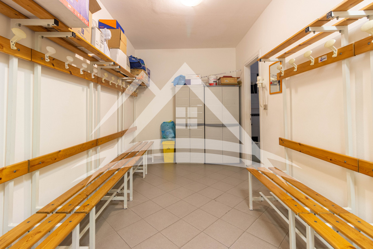 Piano terra: Due ampi vani (uno adibito a ingresso con reception), un vano adibito a spogliatoio con annesso bagno